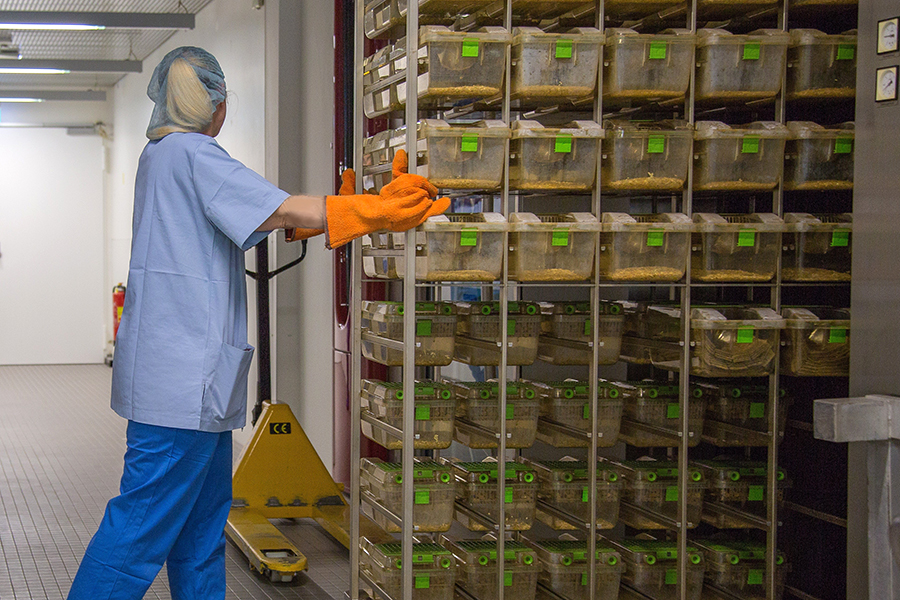 Unsere Einrichtung ist in zwei Bereiche gegliedert: einen Zuchtbereich mit besonders hohen Hygienestandards sowie einen Experimentalbereich, der ebenfalls unter kontrollierten Hygienebedingungen betrieben wird und den Forschenden einen optimalen Zugang bietet.